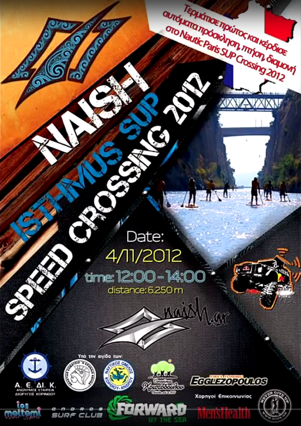 On November 4th 2012, the first SUP race-crossing was organized at Corinth Canal. This race was the final chapter from a series of SUP races that were held through out the Summer of 2012 in several spots in Greece.
