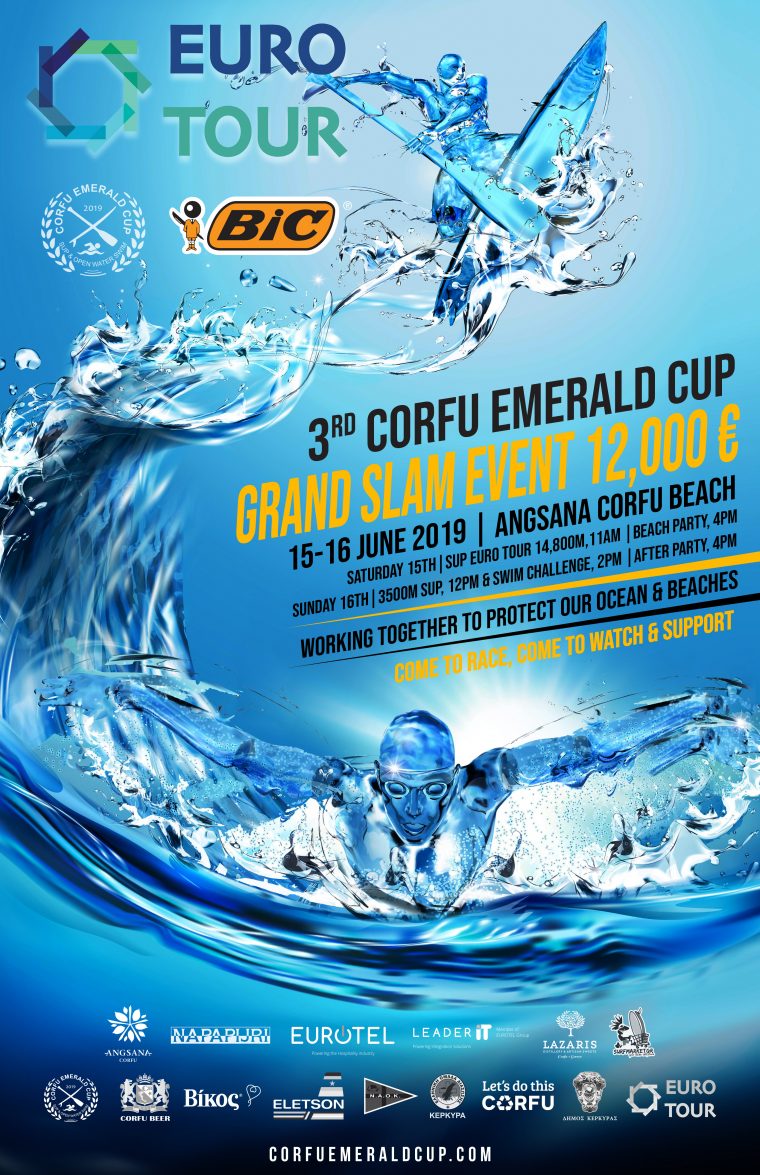 The 3rd Annual Corfu Emerald Cup was scheduled for June 15-16, 2019 and it came with exciting new features. After a big boost in participation and spectator attendance in its 2nd year, the June Corfu Emerald Cup has been a new showcase SUP Euro Tour Grand Slam 12,000EUR event.