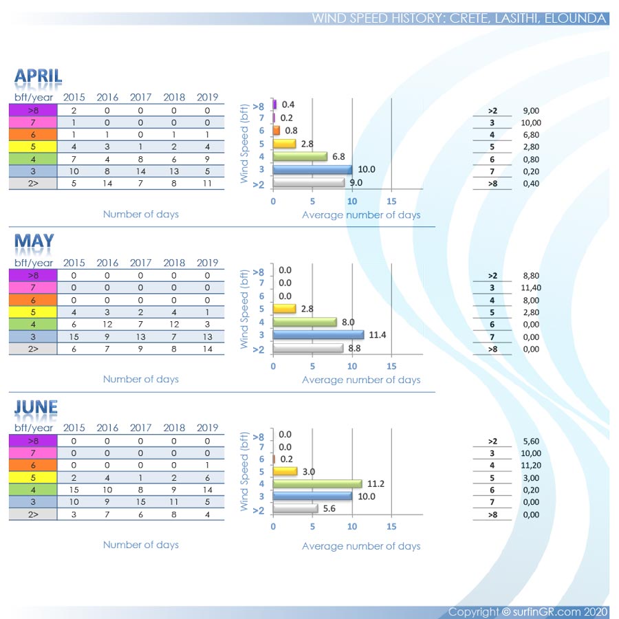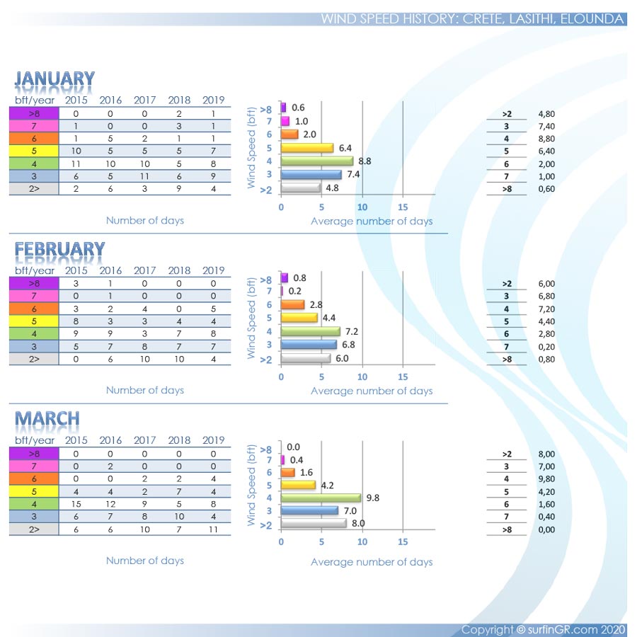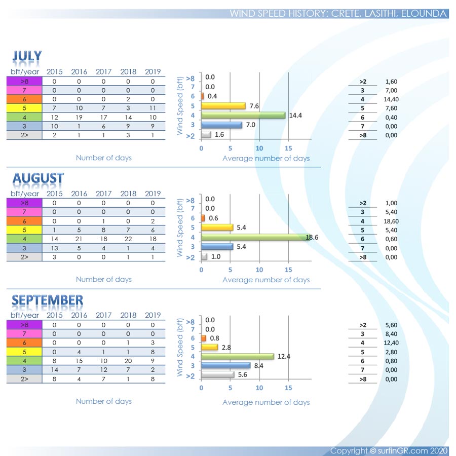 During the summer in Elounda spot blows onshore northern winds. The wind speeds up through the mountains of Elounda and through Spinalonga Peninsula, passing through the surf-bay. The weather is hard to predict though – you'll never know until you get there, but if there's wind it's usually strong. Proof of the windy conditions is the three old abandoned mills just next to the small bridge. Not ideal conditions for kitesurf, only for windsurf.